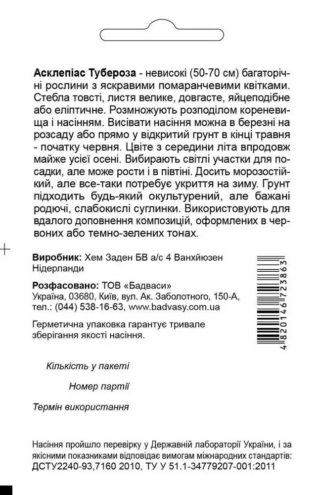 Асклепіас Тубероза, 0,1 г, Садиба Центр