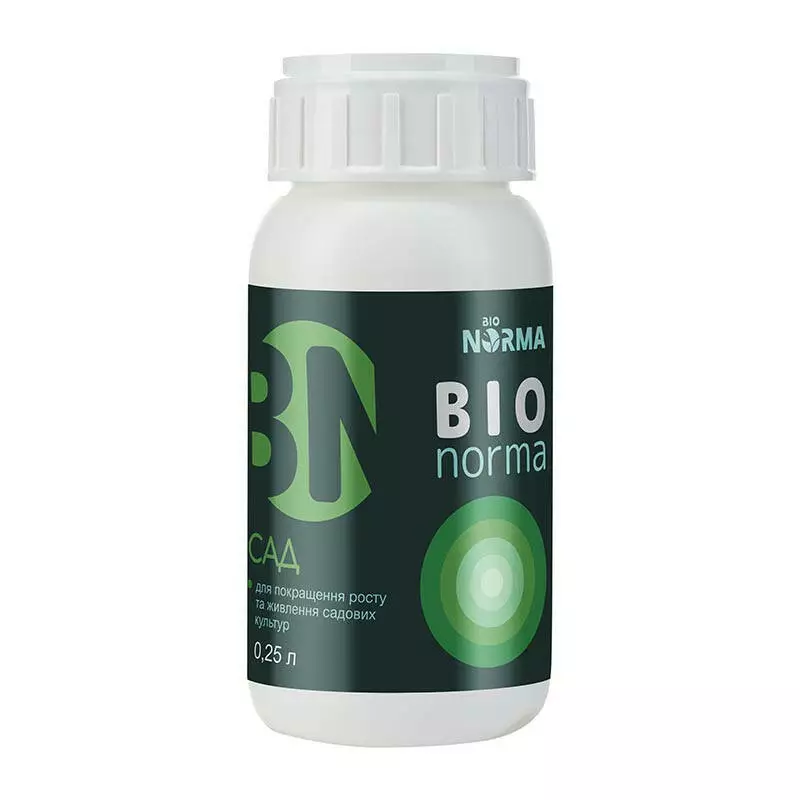 Біонорма сад – це біодобриво для обробки насіння, насаджень та саджанців садових культур, фертигації та обробки ґрунту. Призначений для попередження та захист садових культур від хвороб.