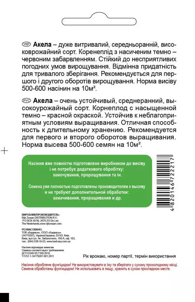 Дуже витривалий, середньоранній, високоврожайний сорт. Коренеплід з насиченим темно – червоним забарвленням. Стійкий до несприятливих погодних умов вирощування. Відмінна придатність для тривалого зберігання. Рекомендується для першого і другого оборотів вирощування. Норма висіву 500-600 насінин на 10м².Оплата та доставка