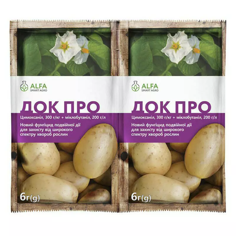 ДОК ПРО - найкращий протруйник бульб картоплі інсектицидно-фунгіцидної дії. Надійно захищає бульби та молоді рослини картоплі від шкідників з гризунами та колюче-сисним ротовим апаратом, у тому числі від грунтових шкідників, хвороб сходів.