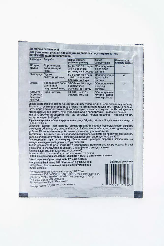 Механізм дії: Тіовіт Джет бездоганно розчиняється, утворюючи однорідну стійку суспензію, та добре утримується на обробленій поверхні. Вплив на шкодочинний об’єкт проявляється в порушенні низки процесів життєдіяльності клітин патогена за рахунок виділення сірки.