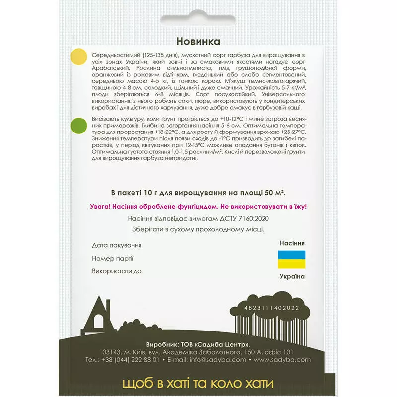Прекрасний середньоранній мускатний сорт. Плоди масою 3-5 кг, тонкошкірі, помаранчево-рожевого кольору, з делікатним, солодким смаком. Сорт прекрасно підходить для приготування пюре, чим завоював особливу любов виробників дитячого харчування. Порадує вас відмінною лежкістю (6-8 міс.) та чудовим смаком страв і консервації.Оплата та доставка