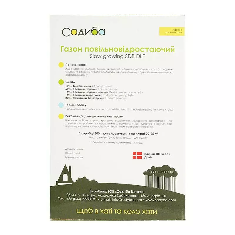 Газонна трава Повільновідростаюча Садиба, 800 г