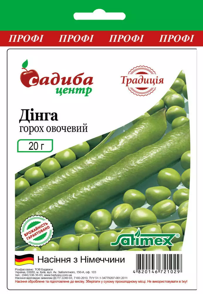 Урожайний середньоранній сорт мозгового гороху. Конткурентна рослина ( до 90 см) з компактними бобами довжиною до 11см світло-зеленого кольору. Горошини хрумкі, мають солодкий, освіжаючий смак. Висівають в квітні-травні на глибину 3-5см у підготовлений ґрунт. Відзначається високою стійкістю до фузаріозного в’янення. Сорт відмінно підходить для будь-якої кулінарної обробки, споживання у свіжому вигляді та, особливо, консервування чи заморожування.Оплата та доставка