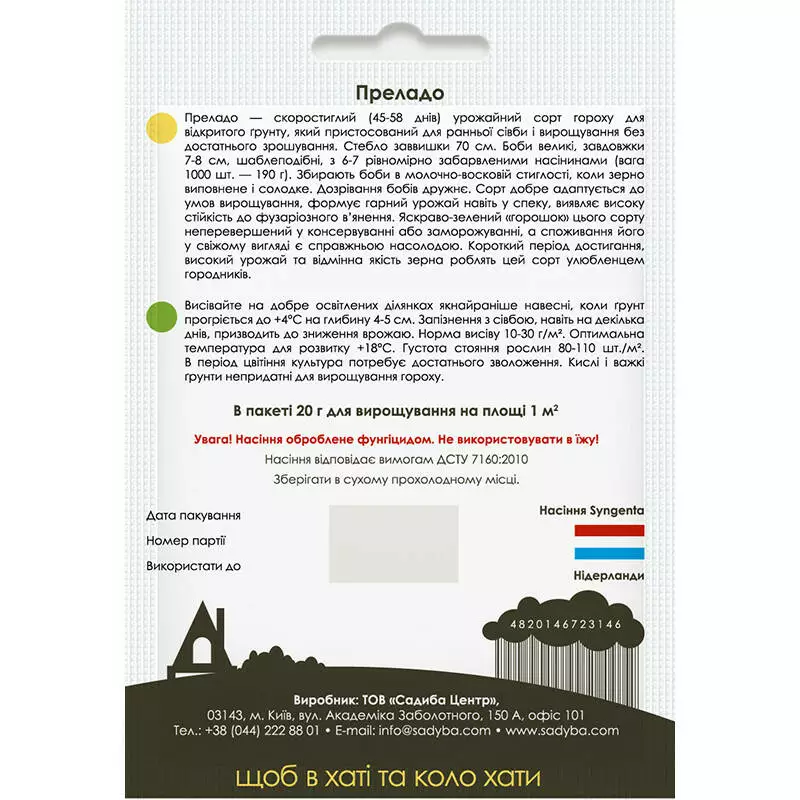 Надранній горох, темно-зелений, крупнозернистий, зморшкуватий. У стручку 7 насінин, довжина стебла 70 см. Можливість ранньої сівби, широка адаптація, вирівняне забарвлення.Оплата та доставка