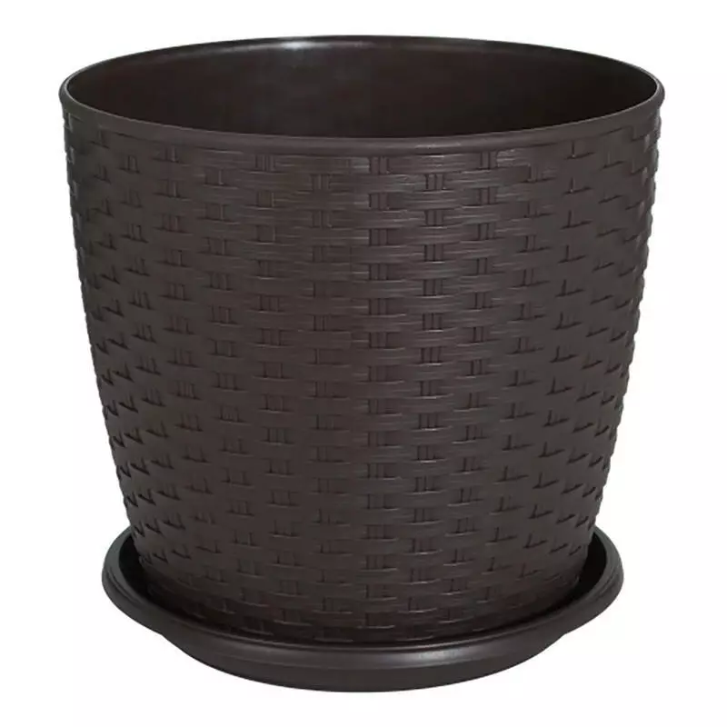 Горщик Ротанг з поліпропілену оформлені настільки незвичайно, що можуть використовуватися для оформлення як кімнат, так і елементів садової архітектури. Підходять для посадки невеликих дерев та рослин з розгалуженою кореневою системою.