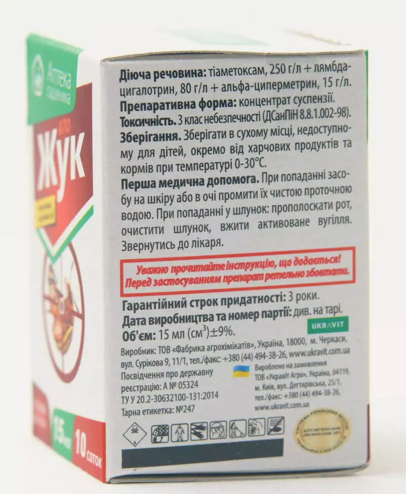 Інсектицид АТО Жук - бінарний комплект інноваційного трехкомпонентного контактно-системного інсектициду для повного знищення широкого спектра шкідників культурних рослин з комплексом стимуляторів росту.