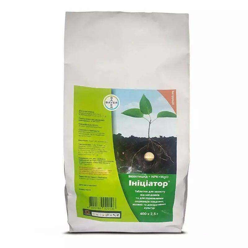 Ініціатор - це комбінація системного інсектициду з добривами подовженого терміну дії у вигляді зручної для використання таблетки.