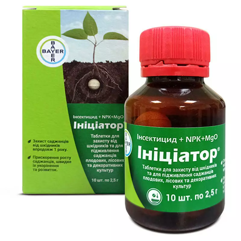 Ініціатор - це комбінація системного інсектициду з добривами подовженого терміну дії у вигляді зручної для використання таблетки.