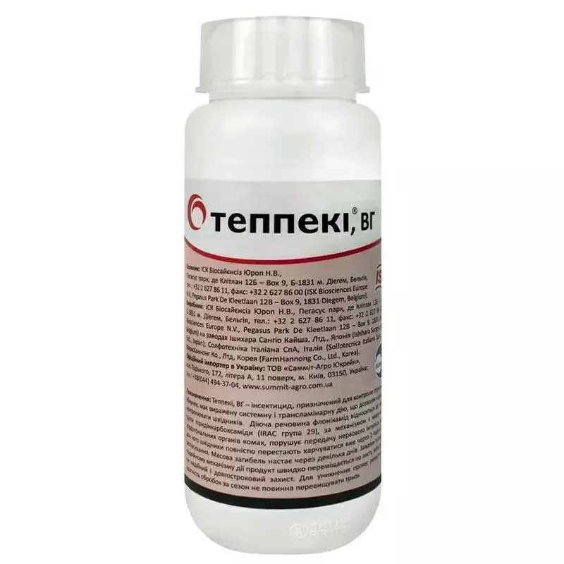 Теппекі – це перший інсектицид для контролю попелиць та інших сисних шкідників з антифідинговим ефектом — миттєва зупинка живлення протягом 30 хвилин після обприскування. Самий тривалий період захисту — забудь про проблеми на 30 днів. Ідеальний препарат для інтегрованих схем захисту — не впливає на корисну ентомофауну, безпечний для запилювачів і контролює те, що не контролюється іншими інсектицидами.