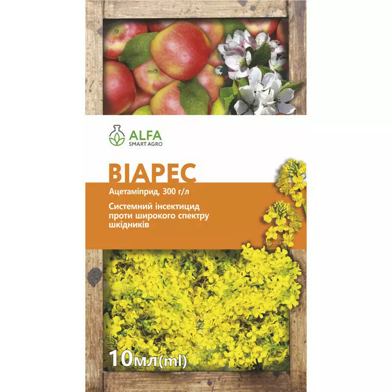 Віарес – системний інсектицид, що застосовується для обробки яблуні та ріпаку проти комплексу комах-шкідників, що належать до рядів твердокрилі та рівнокрилі.
