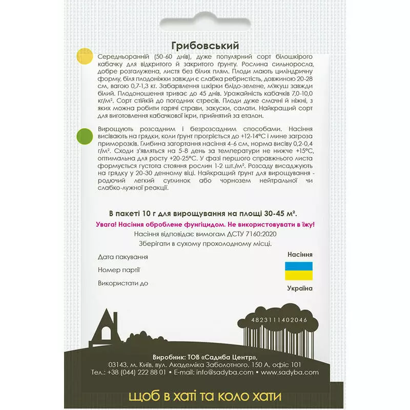 Популярний, один із найкращих середньостиглих сортів. Період вегетації 45-50 днів. Кущ сильний, розлогий, утворює плоди масою 0,7-1,3 кг, білого кольору із легким зеленуватим нальотом. Шкірка щільна, а м’якоть – ніжна. Сорт невибагливий та стійкий до хвороб. Підходить для приготування надзвичайно смачних овочевих страв, гарнірів та для консервування.Оплата та доставка