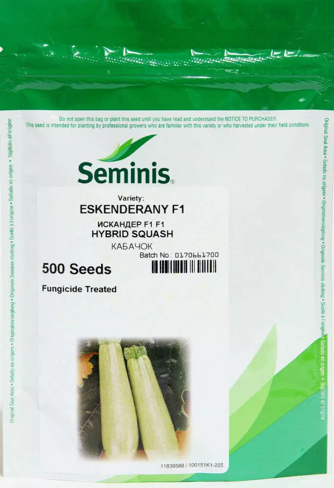 Надранній гібрид кущового кабачка. Рослина компактна. Плоди циліндричні, довжиною 18-20 см Колір шкірки світло-зелений, м’якоть біла. Плодоносить до перших заморозків. Рекомендується для вирощування у відкритому ґрунті і плівкових теплицях.Оплата та доставка