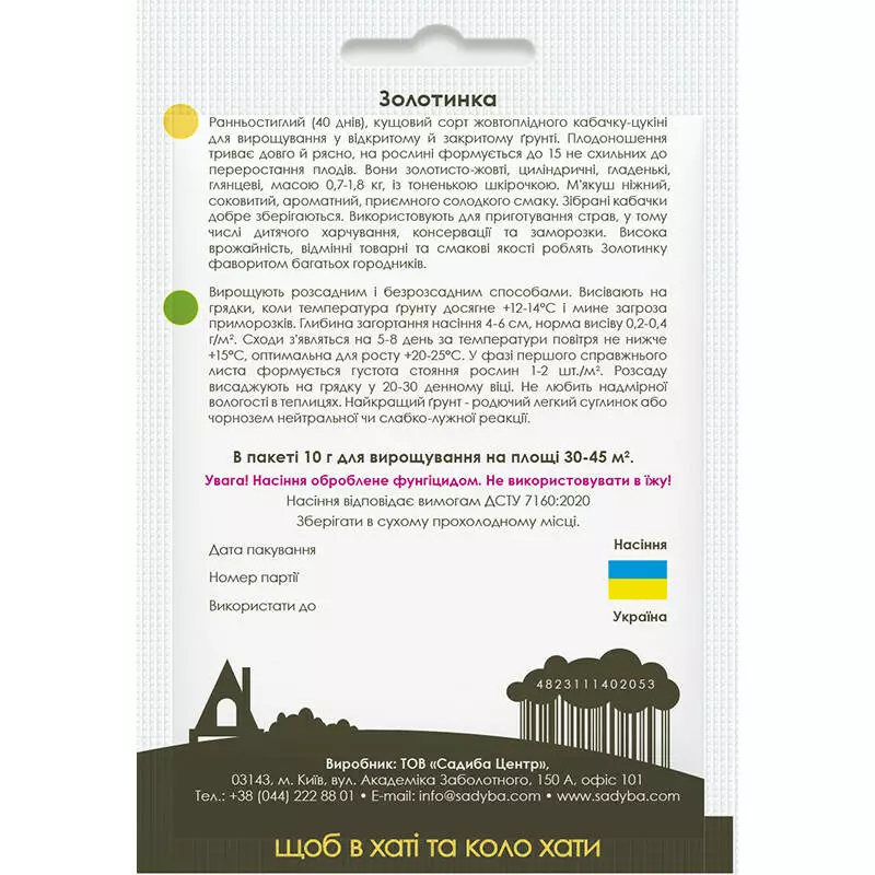 Яскравий ранньостиглий сорт, який порадує вас якісним та високим урожаєм. Кущ компактний, утворює велику кількість циліндричних жовто-золотистих плодів з тонкою, делікатною шкіркою та соковитий, щільний м’якуш. Висівають насіння в травні на глибину 4-5см. При вирощуванні розсадним способом (використовують 20-30-денну розсаду) продукцію одержують на 10-15 днів раніше. Сорт чудово підходить для любителів яскравої консервації (не розлазиться та не втрачає кольору) та для домашньої кулінарії.Оплата та доставка
