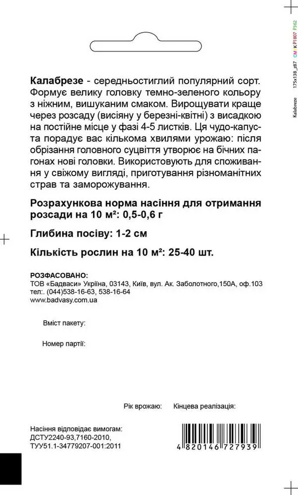 Середньоранній популярний сорт. Формує велику головку темно-зеленого кольору з ніжним, вишуканим смаком. Вирощувати краще через розсаду (висіяну у березні-квітні) з висадкою на постійне місце у фазі 4-5 листків. Ця чудо-капуста порадує вас кількома хвилями урожаю: після обрізання головного суцвіття утворює на бічних пагонах нові головки. Використовують для споживання у свіжому вигляді, приготування різноманітних страв та заморожування.Оплата та доставка
