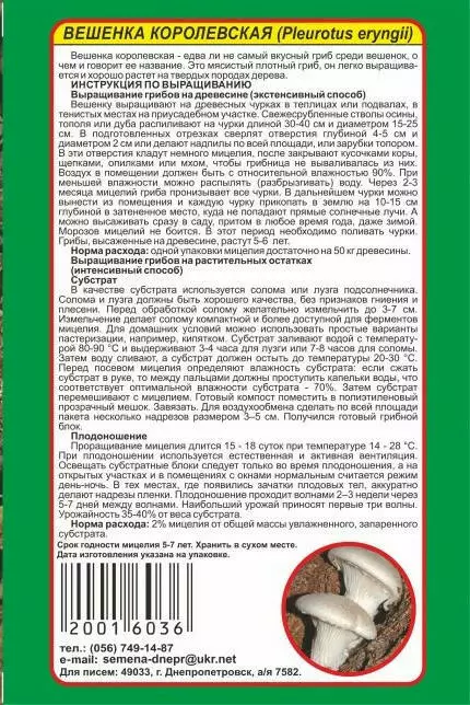 Міцелій Глива королівська, 10 г