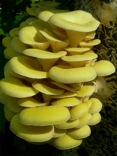 Глива лимонна (Pleurots citrinopileaus)Глива лимонна по праву входить до числа найцікавіших грибних різновидів. Вона привертає увагу незвично яскравим забарвленням капелюшків і витонченою конічною формою плодових тіл.
