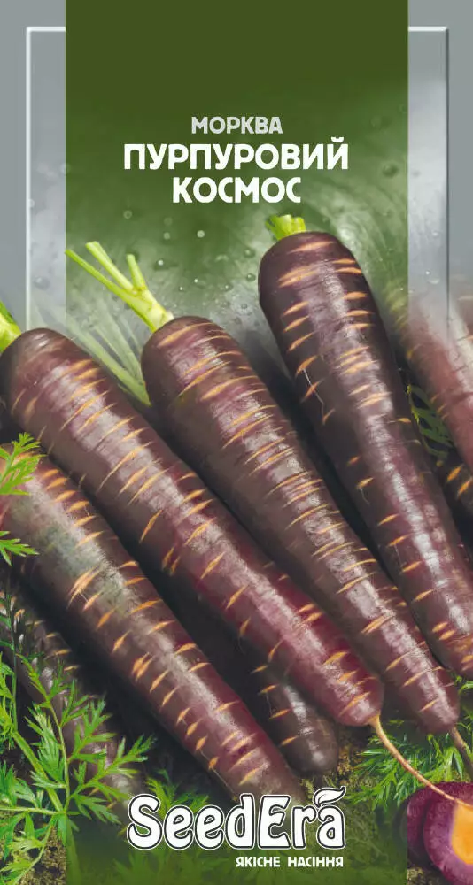 Морква столова Пурпурний космос - незвичайний колір природних антиоксидантів.Пізній сорт моркви. Вегетаційний період від сходів до технічної стиглості 135 днів. Форма плоду конічна. Маса плоду 140 - 170 г. Сорт добре зберігається, используеться в свіжому вигляді і для переробки.