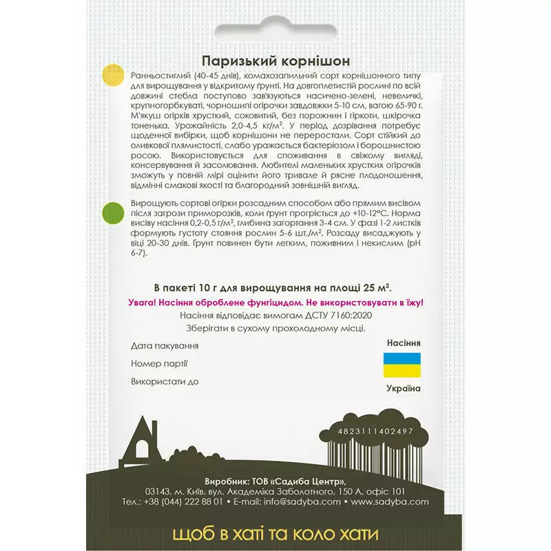 Високоякісний середньоранній комахозапильний сорт для вирощування у відкритому ґрунті. Зеленці 6-10 см довжиною, крупнобугисті, мають відмінний смак без гіркоти. Сорт відзначається стійкістю до пероноспорозу та несприятливих умов вирощування. Використовується для споживання у свіжому вигляді, консервування і соління.Оплата та доставка