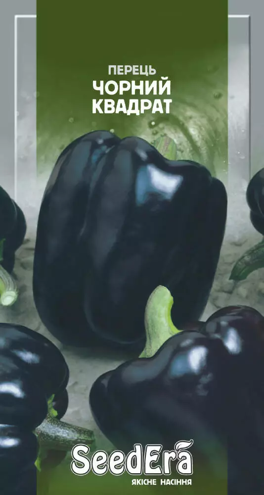 Чорний квадрат - дуже смачний ранній сорт солодкого перцю, період вегетації триває до 110 днів після появи сходів. Рослина середньоросла, плоди кубовидної форми, сегментовані, від темно - пурпурного до майже чорного кольору, товщина стінок до 7 мм, вага плодів 110 - 170 г. Сорт стійкий до комплексу хвороб, має високу врожайність і прекрасні смакові якості. Придатний для всіх типів кулінарної переробки і свіжого салатного вживання.Оплата та доставка