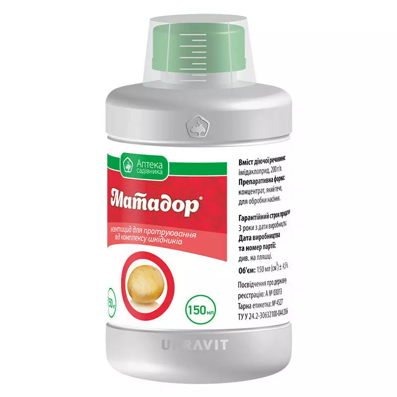Матадор - cистемний інсектицид контактно-шлункової дії для протруювання бульб картоплі перед їх висадкою в ґрунт. Знищує ґрунтових шкідників та запобігає їх розповсюдженню упродовж всієї вегетації.