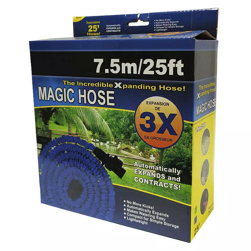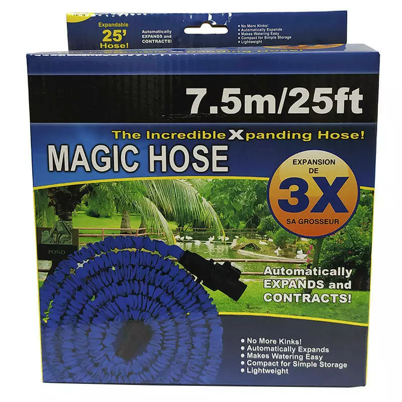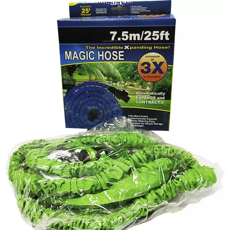 Шланг для поливу, що розтягується, збільшується в 3 рази в довжину, як тільки ви включаєте воду, і повертається до звичайних розмірів при її відключенні. Він складається з двох «шарів». Всередині знаходиться латексна трубка, яка має здатність добре розтягуватися. Під тиском води трубка розширюється і подовжується до розмірів зовнішнього кожуха з щільного поліестеру. Шланг не переломлюється і не перекручується. На обох кінцях шланг оснащений конекторами для підключення сполучної і поливальної арматури.