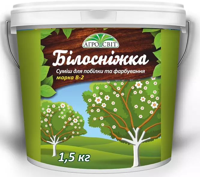 Садова побілка для захисту дерев і чагарників, містить протигрибкові та протимікробні добавки.Суміш для проведення оздоблювальних робіт в садово-паркових і фермерських господарствах: фарбування і побілка стовбурів дерев, конструкцій і споруд, виконаних з дерева, деревних матеріалів з метою надання декоративно-естетичного вигляду. Також використовують для санітарно-дезінфекційної обробки садово-городніх споруд, приміщень