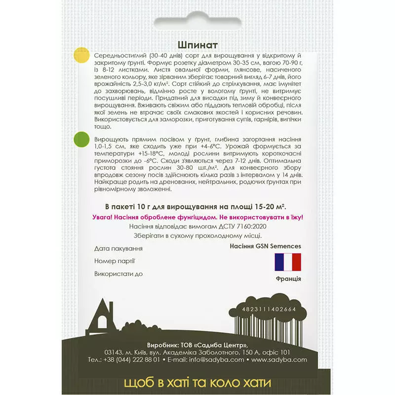 Шпинат - вегетаційний період 20 - 40 днів. Високий вміст вітамінів. Швидкоросла, морозостійка, вологолюбна культура.Оплата та доставка