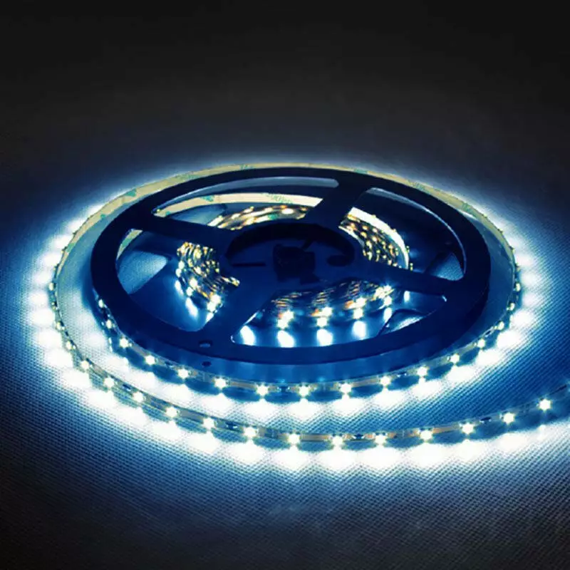 Джерелом світла є світлодіоди типу 2835smd. Вони дуже компактні, мають високу енергоефективність і видають інтенсивний світловий потік. На одному метрі стрічки розташовано 60 діодів, що випромінюють яскраве синє світло.