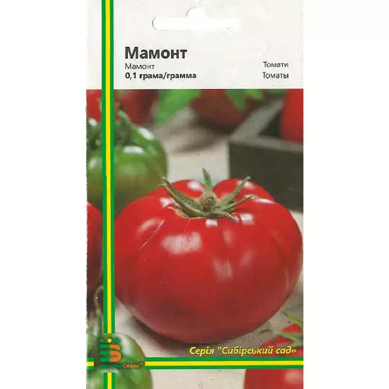 Томат Мамонт - це смачний і великоплідний сорт, який має високий вміст у плодах вітамінів. Сорт середньостиглий, період від сходів до дозрівання 110-115 днів. Рослини високорослі від 1,5 до 2 метрів, необхідно приділити особливу увагу підв'язці кущів та гілок із плодами.