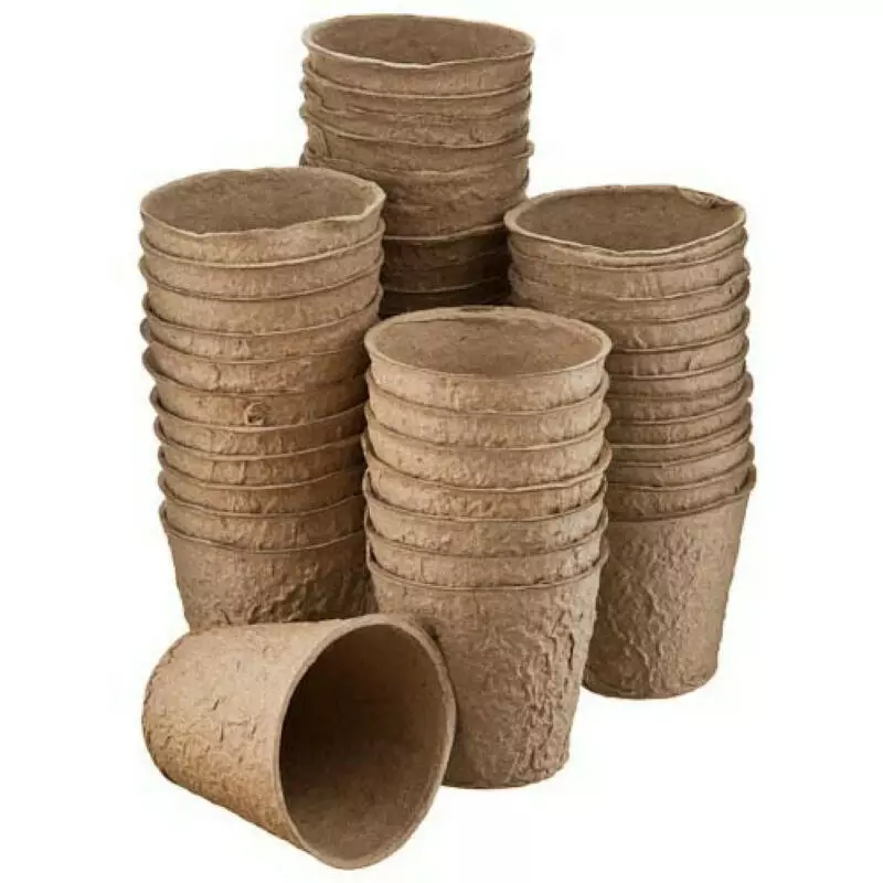Тонкостінні торф'яні горщики для вирощування розсади овочів, квітів та інших с / г культур. Торф'яні горщики виробляються з торфо-паперової суміші (70% -торфа, 30% харчового картону) .Стенкі торф'яного горщика виготовляються з верхового сфагнового фрезерного торфу з добавками деревно-паперової суміші, товщиною 1-1,5 мм, що дозволяє при висадці розсади в грунт - швидкого розпаду горщика до 28 днів і укоріненню рослин, цим знизити витрати по внесенню добрив і отримати надбавку до врожаю на 25-30%Оплата та доставка