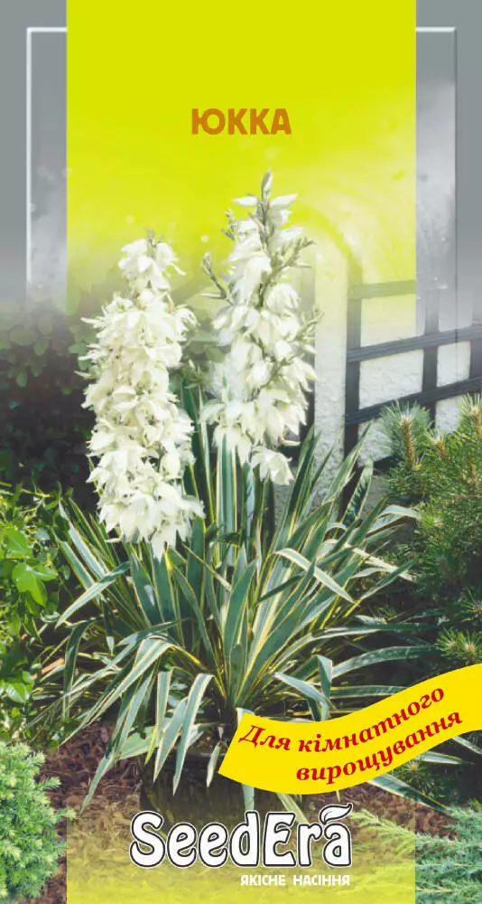 Юкка - це декоративно-листяна багаторічна рослина. На Дерев'янисті підставі формується розетка з великих двоцвітних листя, по краях яких виступають тоненькі нитки. Під час цвітіння, на верхівках довгих квітконосів, утворюються ароматні суцвіття-кисті з численних білих дзвіночків. Вирощується висівом насіння на розсаду в березні-квітні. Цвітіння зазвичай починається через два роки після посадки. Використовується для озеленення клумб, садів, оранжерей, фойє і великих приміщень.Оплата та доставка